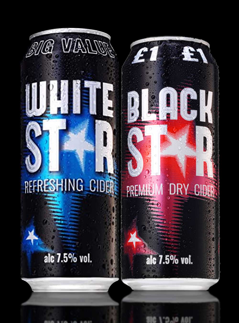 White Star was acquired and relaunched alongside Diamond White. The brand was extended with the introduction of Black Star, a dry amber cider, and the Star cider brand was born. This brand offers quality at great value for money, and is continuing to flourish in the Independent and Convenience sectors.
